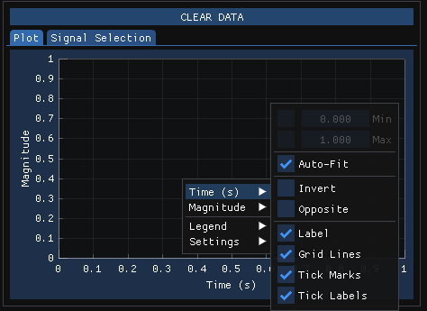 Auto-Fit: To prevent an axis from auto-fitting, you can uncheck this option. Note: This is per axis (Time (s) or Magnitude)