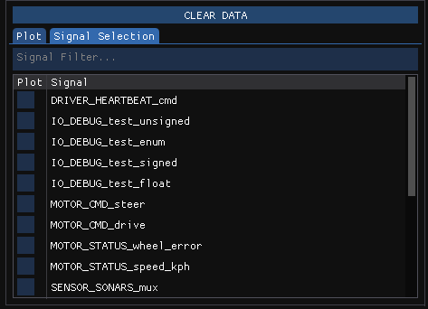 To load in a dbc to be utilized, Under the “Formatter List” menu in the left panel, click the folder icon. Select where the DBC file is located and hit okay. There should be a log entry that details if the procedure was successful or not. Once loaded, the signals should appear inside the “Signal Selection” portion of the plot tab.